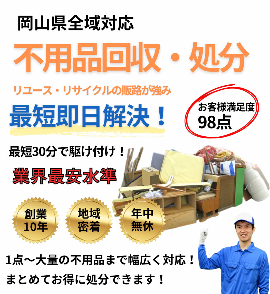 【岡山県全域】最短即日で不用品回収・処分を実施中!