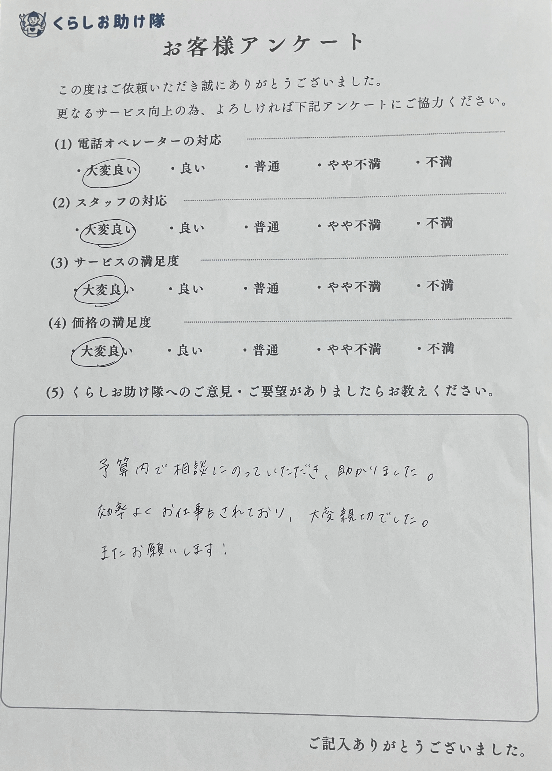 効率よくお仕事もされており、大変親切でした。またお願いします!