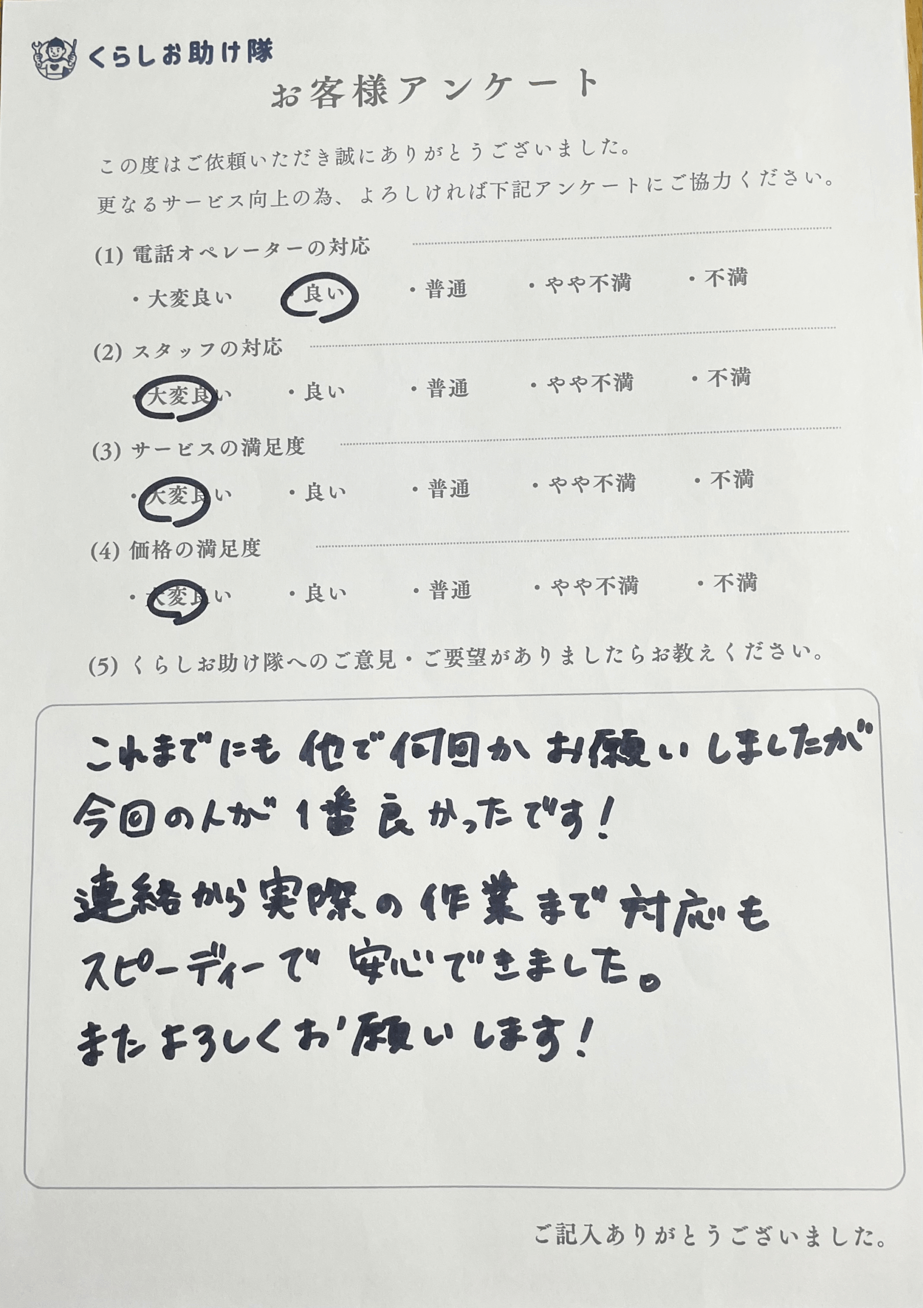 連絡から実際の作業まで対応もスピーディーで安心できました。
