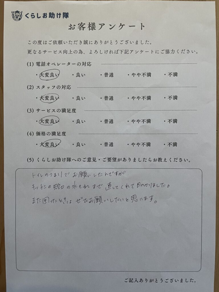 キッチンの蛇口の水漏れまで直してくれて助かりました。