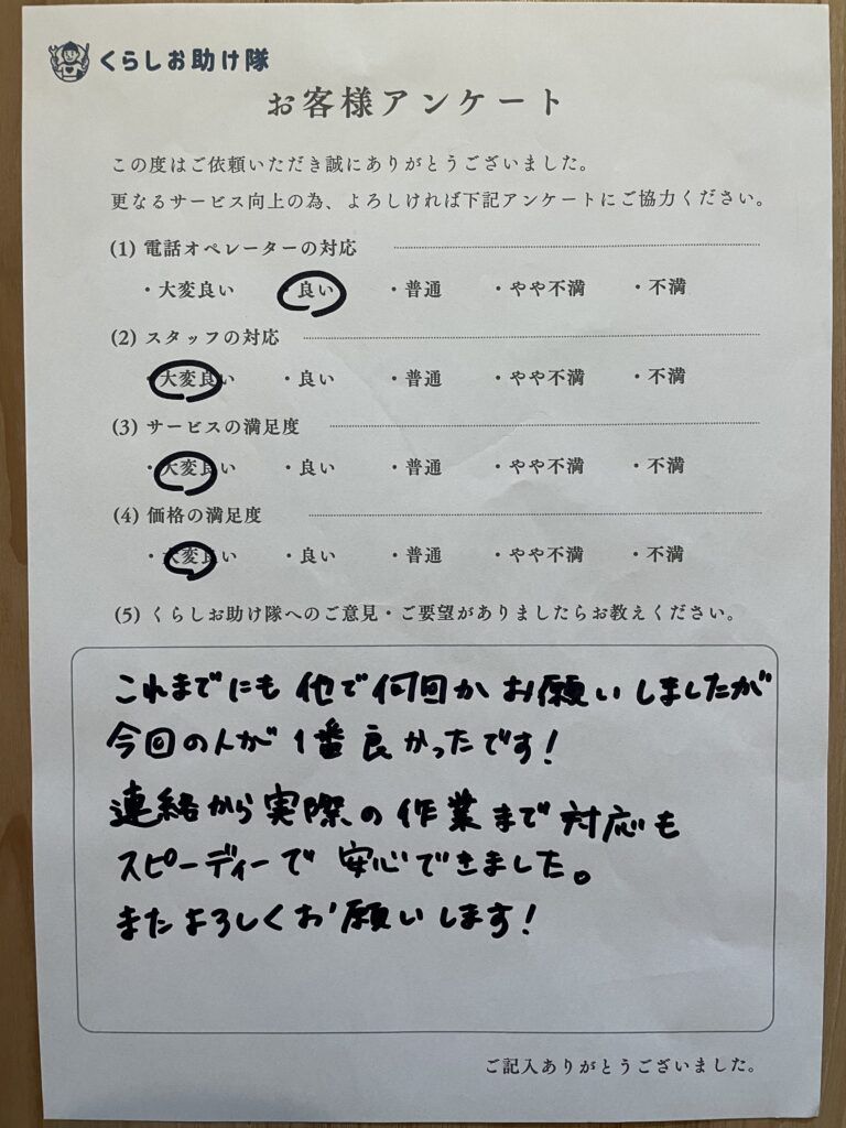 連絡から実際の作業まで対応もスピーディーで安心できました。